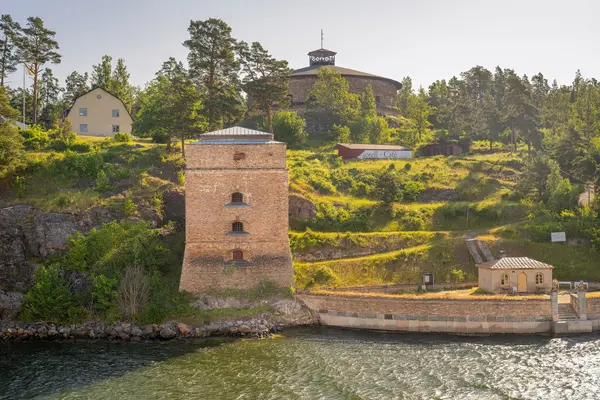 Neben all den kleinen Inseln und Holzhäusern tauchten immer mal wieder auch Bauwerke auf, die an die lange Geschichte dieser Region erinnern. Besonders eindrucksvoll war dieser alte Festungsturm bei der Einfahrt nach Stockholm. Mit seinen dicken Mauern wirkt er wie ein stummer Zeuge vergangener Zeiten, als der Schärengarten nicht nur idyllischer Rückzugsort, sondern auch strategisch wichtiger Zugang zur Stadt war.